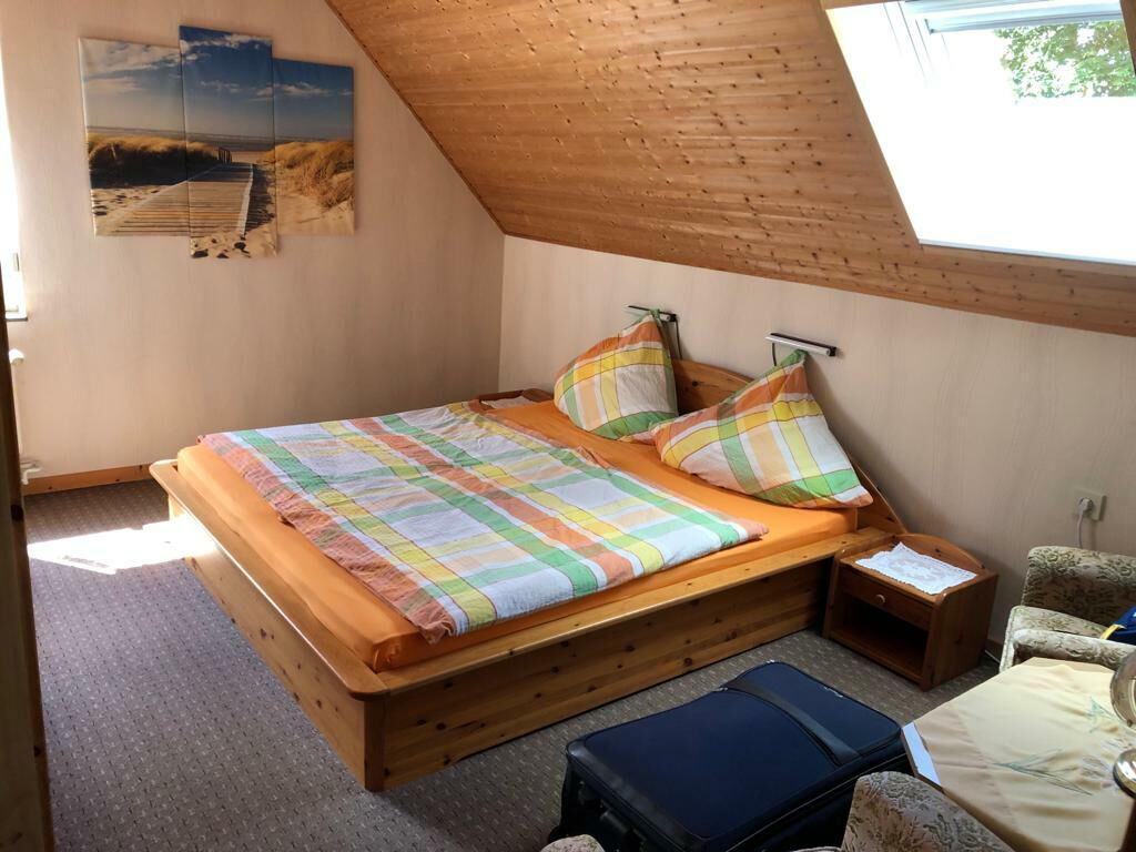 Die Ferienwohnung umfasst 50 m² auf einer Etage und bietet Platz für maximal 4 Gäste. Sie verfügt über 2 Schlafzimmer und 1 Bad. Das Wohnzimmer mit Essbereich misst 14 m² und bildet den zentralen Aufenthaltsraum. Das erste Schlafzimmer misst 14 m² und ist mit einem Doppelbett ausgestattet, das aus 2 Einzelmatratzen à 90 cm Breite und 200 cm Länge besteht. Das zweite Schlafzimmer misst 11 m² und verfügt ebenfalls über ein Doppelbett mit 2 Einzelmatratzen à 90 cm Breite und 200 cm Länge. Das Bad ist mit Dusche und WC ausgestattet. Die Wohnung zeichnet sich teilweise durch charakteristische Dachschrägen aus.