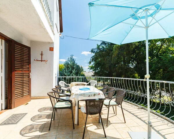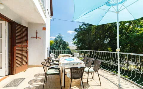 6-Zimmer-Haus 140 m2. Teilweise abgeschrägt, einfach eingerichtet: Wohn-/Esszimmer mit Sat-TV. Ausgang zur Terrasse. 1 Zimmer mit 1 Ausziehbett (2 Pers.). Küche (4 Kochplatten, Backofen). Bad, sep. WC. Keine Heizmöglichkeit. Obergeschoss: 1 Zimmer mit 1 franz. Bett. Ausgang zum Balkon. 1 Zimmer mit 1 Bett (80 cm, Länge 200 cm), 1 Ausziehbett (1 Pers.). 2 Zimmer, jedes Zimmer mit 2 Betten. Ausgang zum Balkon. Bad/WC, Dusche/WC. Terrasse 15 m2. Terrassenmöbel, Gartengrill (mobil). Sicht auf die Landschaft. Parkplatz beim Haus. Maximal 1 Haustier/Hund erlaubt.