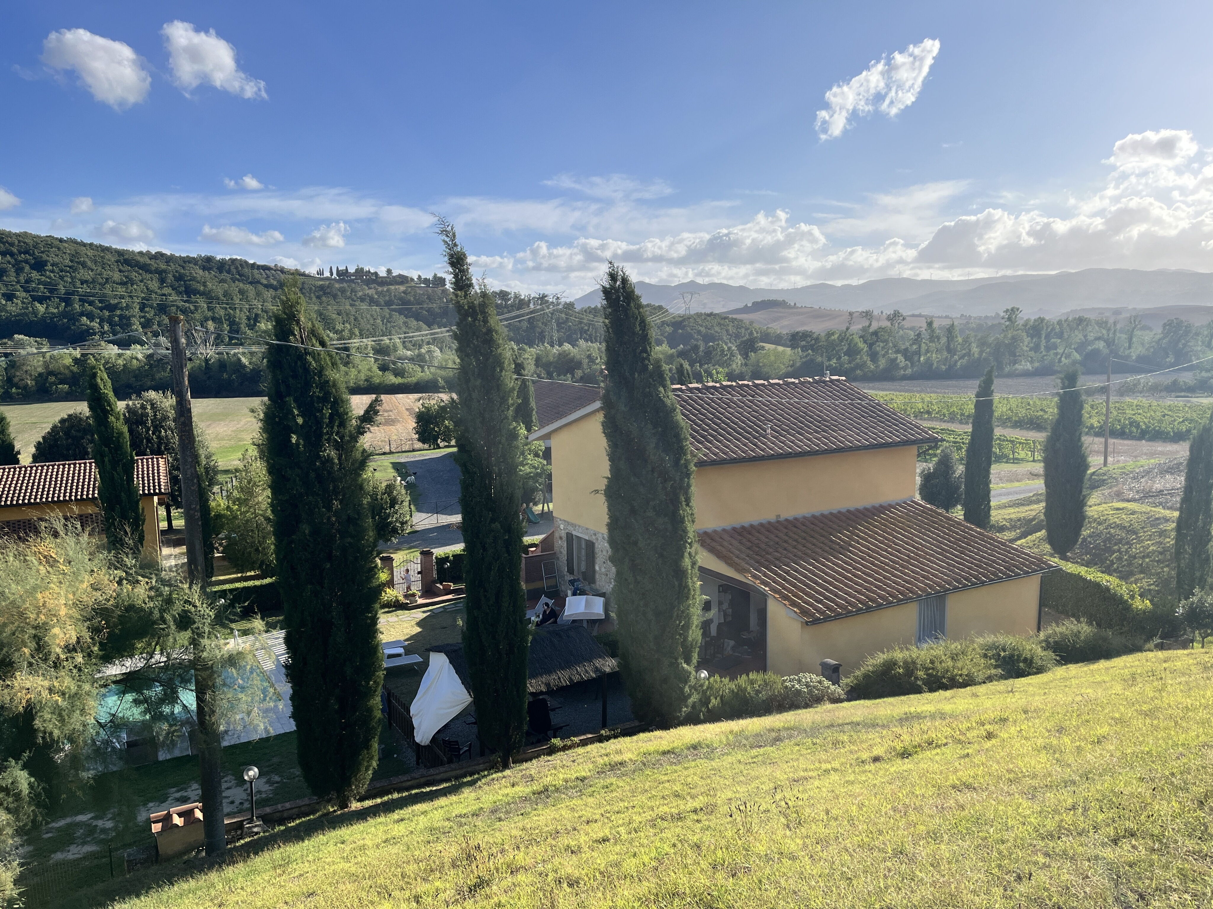 Der Bauernhof liegt in der Ruhe der wunderschönen Hügel des Alta Val di Cecina, mit einem wunderschönen Blick auf endlose, sich ständig verändernde Naturlandschaften. Sanfte grüne Hügel, weite goldene Felder und ein unendlich blauer Himmel, den Sie vom Garten und vom Schwimmbad aus genießen können. Unserer Meinung nach der perfekte Ort für einen unvergesslichen Urlaub.