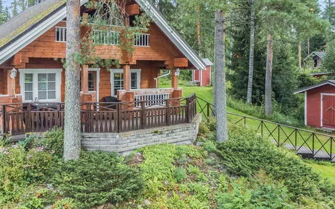 Die Terrasse im Erdgeschoss bietet einen idealen Platz für Entspannung und Mahlzeiten im Freien, während der Balkon im Obergeschoss einen ruhigen Ausblick auf die Umgebung gewährt. Das Ferienhaus liegt nur 30 Meter vom Fluss Matkusjoki entfernt, der einen felsigen, tieferen Uferbereich mit hartem Untergrund aufweist. Eine besondere Besonderheit ist die Flussufer-Sauna, eine typisch finnische Erfahrung, die sich unmittelbar am Wasser befindet. Ein privates Boot steht den Gästen zur Verfügung, um den Fluss zu erkunden.