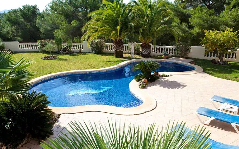 Benissa Costa: Gemütliches, komfortables Einfamilienhaus "Calina". 5.7 km vom Zentrum von Moraira, 10.3 km vom Zentrum von Calpe, im Bezirk Buenavista, ruhige Lage, 1.8 km vom Meer, in einer Sackgasse. Zur Alleinbenutzung: Grundstück 1'000 m2 (eingezäunt), Garten mit Rasen, Schwimmbad (saisonale Verfügbarkeit: 01.Jan. - 31.Dez.). Ungleichmässige Schwimmbadform, WC im Poolbereich, Aussendusche, Sitzplatz, Gartenmöbel, Grill. Im Hause: Wireless LAN, Dachterrasse, Zentralheizung, Klimaanlage, Waschmaschine, Wäschetrockner. Parkplatz. Supermarkt 1.3 km, Restaurant 1.3 km, Bar 1.3 km, Bushaltestelle 2.9 km, Sandstrand 5.3 km, Badebucht 1.8 km. Nahe gelegene Sehenswürdigkeiten: Aqualandia, Mundomar, Terra Mítica, Terra Natura, y Benidorm Palace (Benidorm). Bitte beachten: Das 1. Stockwerk ist geschlossen und nicht bewohnt.