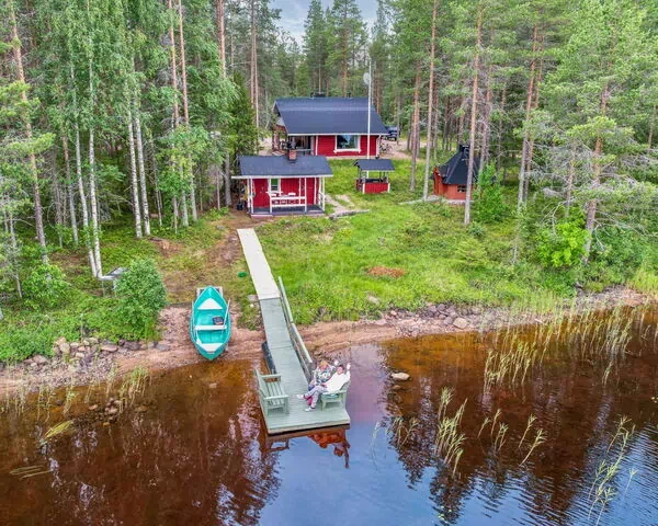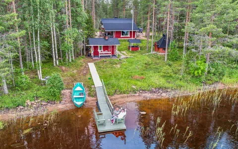 Das Blockhaus liegt unmittelbar am Ufer des Sees Palolompolo, nur 30 Meter vom Haus entfernt. Der See erstreckt sich über eine Länge von etwa 2 Kilometern und eine Breite von etwa 1 Kilometer; das Wasser ist flach und der Grund besteht aus festem Moränenmaterial, was den See besonders zugänglich und angenehm macht. Ein privates Boot steht zur Verfügung, um die ruhigen Gewässer zu erkunden. Die offene Veranda bietet einen einladenden Außenbereich zum Entspannen und Genießen der tranquilen Umgebung, sei es während des langen Lichts des finnischen Sommers oder der klaren Stille der kälteren Jahreszeiten.