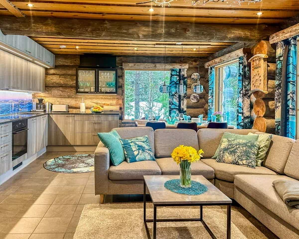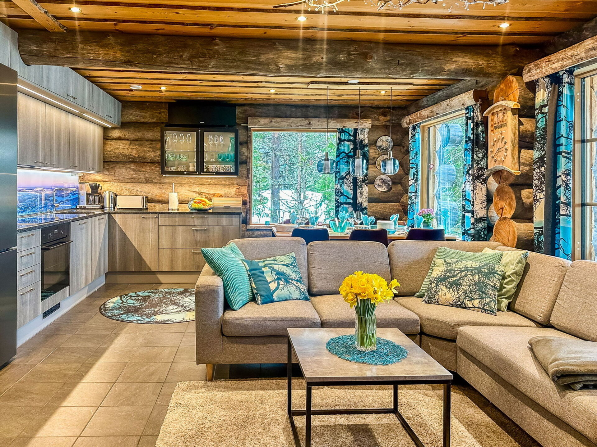 Dieses Kelo-Blockhaus liegt im Herzen von Finnisch-Lappland in Kuusamo und bietet einen wunderschönen Blick auf die Abhänge. Das 2007 erbaute Ferienhaus erstreckt sich über 2 Etagen und ist funktional gestaltet, um Komfort und Privatsphäre zu maximieren. Das Erdgeschoss beherbergt einen einladenden Wohnbereich, eine Sauna mit Fenster und 2 Schlafzimmer, von denen eines mit einem dedizierten Arbeitsplatz ausgestattet ist. Das Obergeschoss verfügt über eine Suite mit einem geräumigen Schlafzimmer, einem privaten WC und einem Balkon.