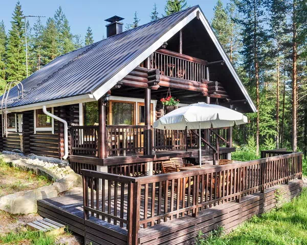 Dieses charmante Blockhaus liegt im Herzen Finnlands in der Gemeinde Jämsä, etwa 75 km nördlich von Tampere. Das 2009 erbaute Ferienhaus verbindet rustikale Handwerkskunst mit komfortablen Wohnräumen auf 2 Ebenen. Das Erdgeschoss umfasst ein Wohnzimmer, eine Küche, ein Schlafzimmer mit zwei Einzelbetten, ein Waschzimmer und ein WC im Ankleidezimmer sowie eine überdachte offene Veranda und eine großzügige Terrasse. Das Obergeschoss bietet zusätzliche Schlafplätze mit 4 Betten und einen privaten Balkon. Das Ferienhaus liegt direkt am Ufer des Sees Vekuri und bietet direkten Wasserzugang sowie die Nutzung eines privaten Bootes.