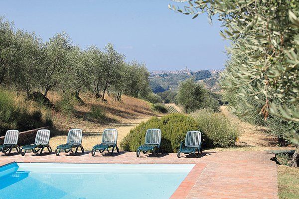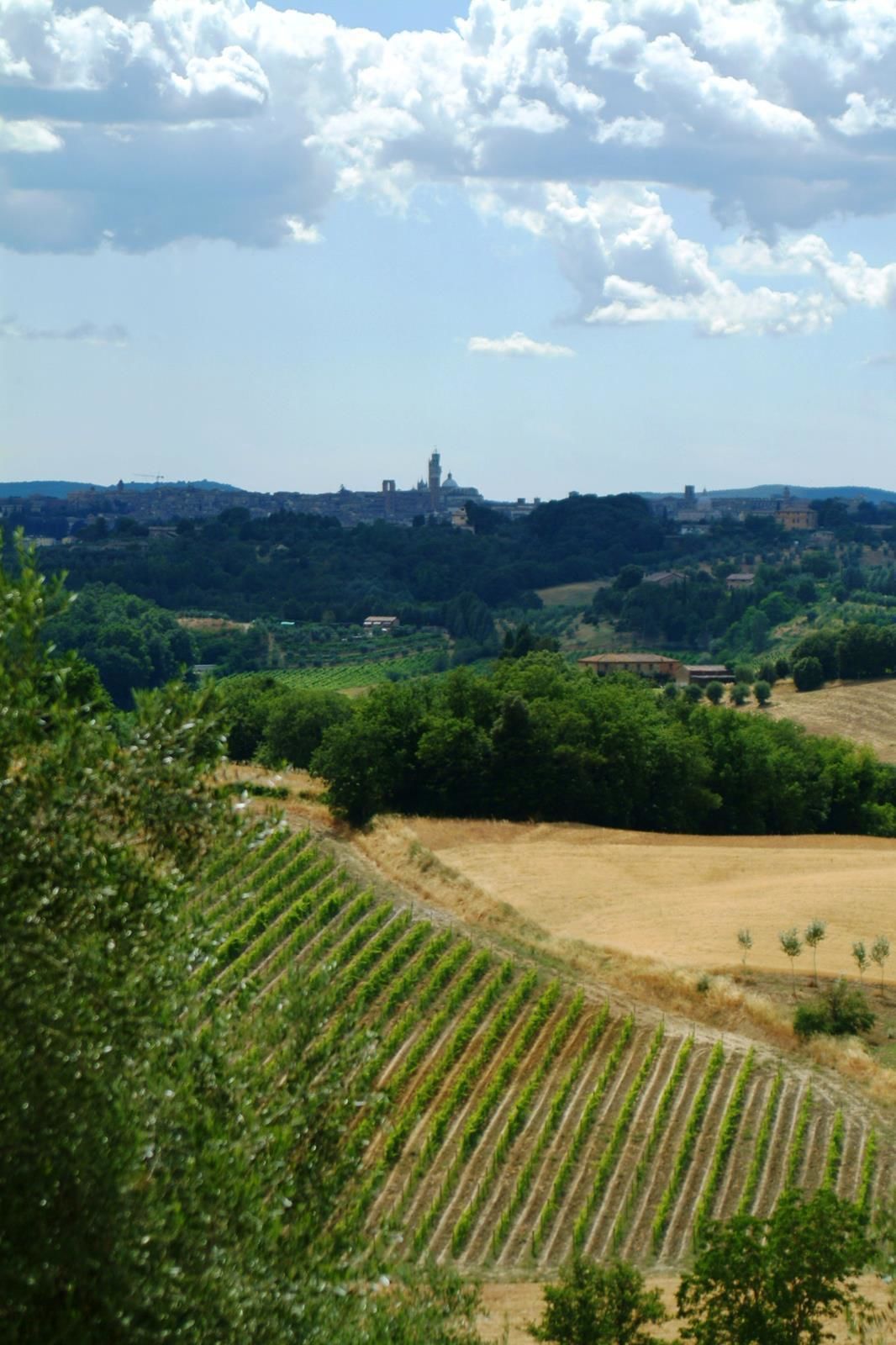 The views are outstanding, particularly the view of Siena in the distance and panoramic view of rolling hills with vineyards and olive groves.