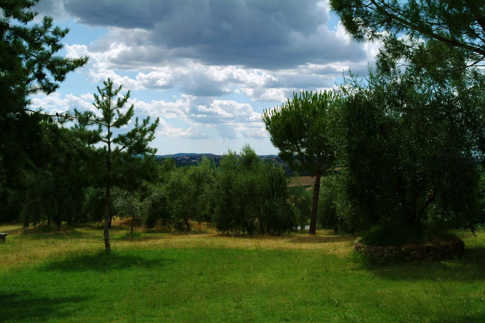 Situated in surrounding gardens, it overlooks the vineyards, olive groves and beautiful countryside approaching Siena.