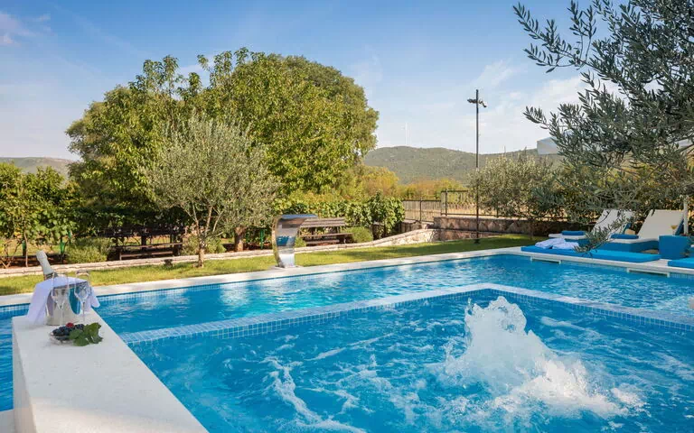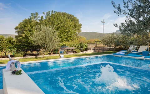 Das historische Zentrum von Trogir, ein UNESCO-Weltkulturerbe, das für seine mittelalterliche Architektur und lebendige Uferpromenade bekannt ist, liegt 13 km vom Anwesen entfernt und bietet ausgezeichnete Möglichkeiten für Kulturausflüge, Dining und Shopping. Die charmante Küstenstadt Primošten mit ihrer malerischen Altstadt auf einer Halbinsel und ausgezeichneten lokalen Restaurants liegt etwa 24 km entfernt. Der nächste Kieselstrand und die nächste öffentliche Badestelle befinden sich 13 km vom Ferienhaus entfernt, ebenso wie die nächsten Geschäfte und Restaurants. Eine Bushaltestelle liegt nur 750 m vom Anwesen entfernt und bietet eine praktische Verbindung für Gäste, die die Gegend ohne Auto erkunden möchten.