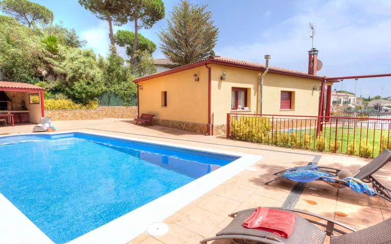 Grosses, gemütliches, komfortables Haus "Farigola", auf 2 Stockwerken. Im Ortsteil Aguaviva, 9 km vom Zentrum von Lloret de mar, 9 km vom Meer, 9 km vom Strand. Zur Alleinbenutzung: Schwimmbad (9 x 4 m, 100 - 180 cm tief, saisonale Verfügbarkeit: 06.Apr. und 18.Okt.). Terrasse (150 m2), Gartenmöbel, Grill (Schaukel). Treppenweg (15 Stufen) bis zum Haus. Öffentliche Parkplätze auf der Strasse. Einkaufsgeschäft 9 km, Supermarkt 8 km, Restaurant 9 km, Bar 9 km, Sandstrand "Playa de fenals" 9 km. Nahe gelegene Sehenswürdigkeiten: Water World Lloret 8 km, Marin Land 16 km. Bitte beachten: Fahrzeug empfohlen. Geeignet für Familien. Jugendgruppen nur auf Anfrage. Die Nachbarschaft ist sehr lärmempfindlich. Ruhe und gutes Benehmen wird erwartet.
