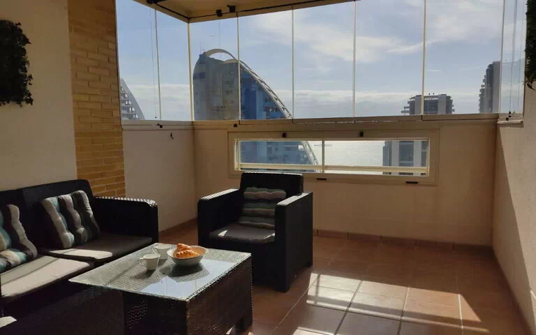 "Islamar III", 3-Zimmer-Wohnung 119 m2 im 19. Stock. Geräumig und hell, zweckmässig eingerichtet: Wohn-/Esszimmer 15 m2 mit Digital-TV, Klimaanlage und Warmluftheizung. Ausgang zur Terrasse. 1 Zimmer 7 m2 mit 2 Betten (90 cm, Länge 190 cm), Dusche/WC, Digital-TV, Klimaanlage und Warmluftheizung. 1 Zimmer 9 m2 mit 1 franz. Bett (150 cm, Länge 190 cm), Dusche/WC, Digital-TV, Klimaanlage und Warmluftheizung. Küche 5 m2 (Backofen, Geschirrspüler, 4 Glaskeramikherd Platten, Wasserkocher, Mikrowelle, Tiefkühler, elektrische Kaffeemaschine). Grosse Terrasse 12 m2. Terrassenmöbel. Sehr schöne Sicht auf das Meer. Zur Verfügung: Waschmaschine, Wäschetrockner, Bügeleisen. Internet (Wireless LAN, gratis). VT-323749-BM