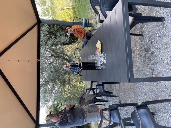 the views from the villa are stunning especially the sun setting on Montepoluciano with the ever-changing light you never get tired of looking over the hills the kitchen is nicely equipped with everything you need We even had a cooking class at the villla that was great fun we spent most of the time outside wes aroundr the picnic table with a very solid Covering over it.