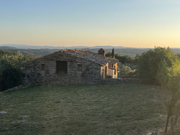 Mooie ligging, terras onder het onkruid. Stoelen vallen bijna uit elkaar. Vrij moeilijk te bereiken via smalle weg en steile helling bij t huis.
