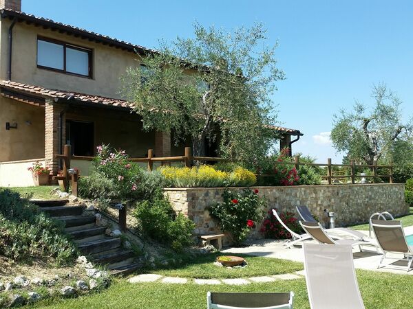 A beautiful and spacious home! Outside the walls of Montalcino, yet an easy walk into town. Red geraniums and Cherry trees, Cypress and fragrant Jasmine. A covered patio to enjoy meals outside. An unusually large yard with views of the church steeples in town. A pool, that was so refreshing after site seeing all day. Very private and very comfortable. A treasure! We had a wonderful week in Spuntone.